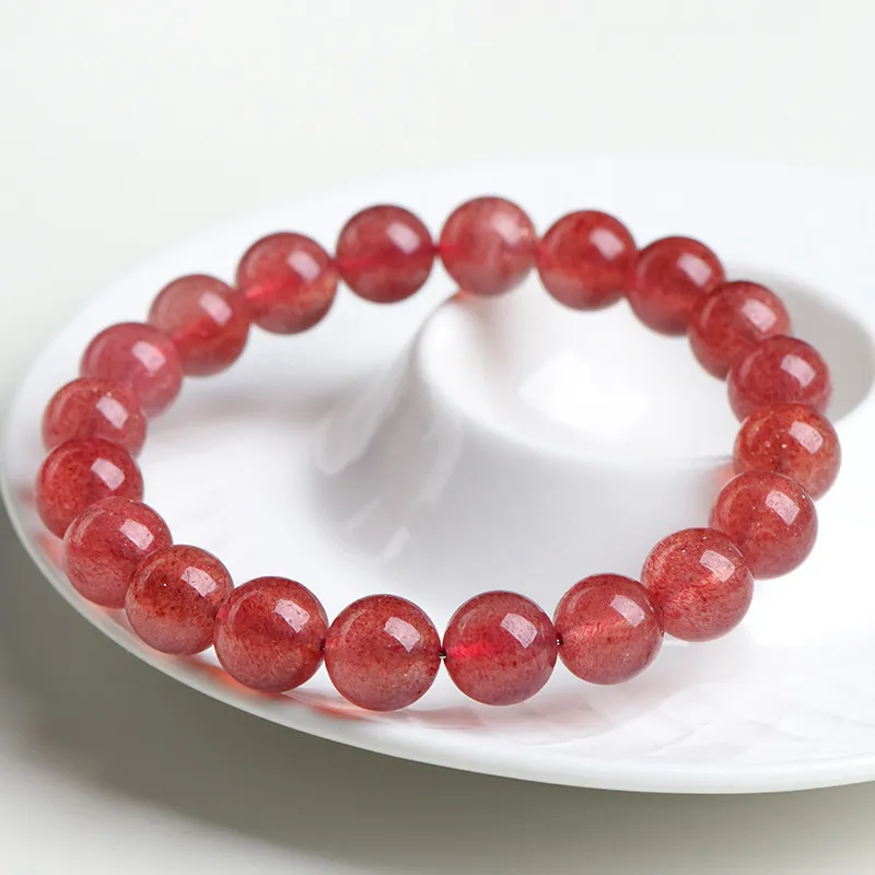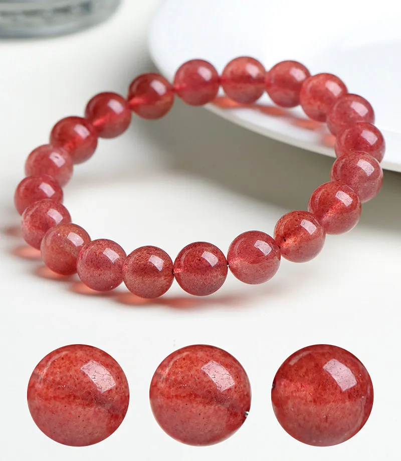 • Elite: High translucency with rich, vibrant reddish-pink inclusions evenly distributed, resembling ripe strawberry seeds within the crystal.